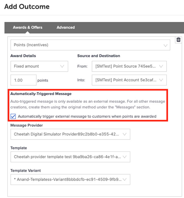 Point Outcome with Automatic Triggered Message