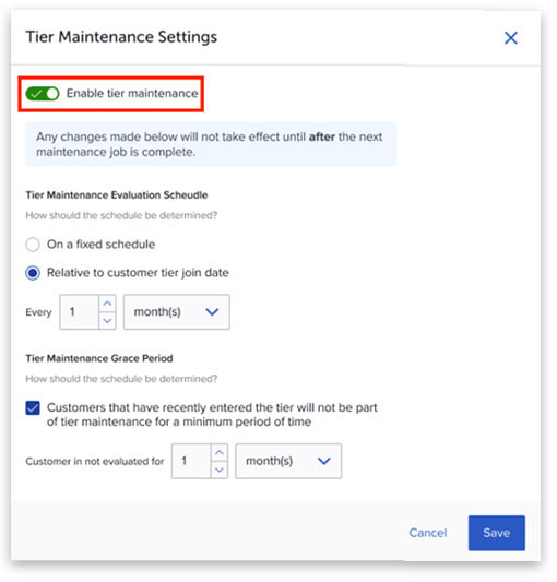 On/Off Toggle for the Tier Maintenance Policy in Loyalty 2